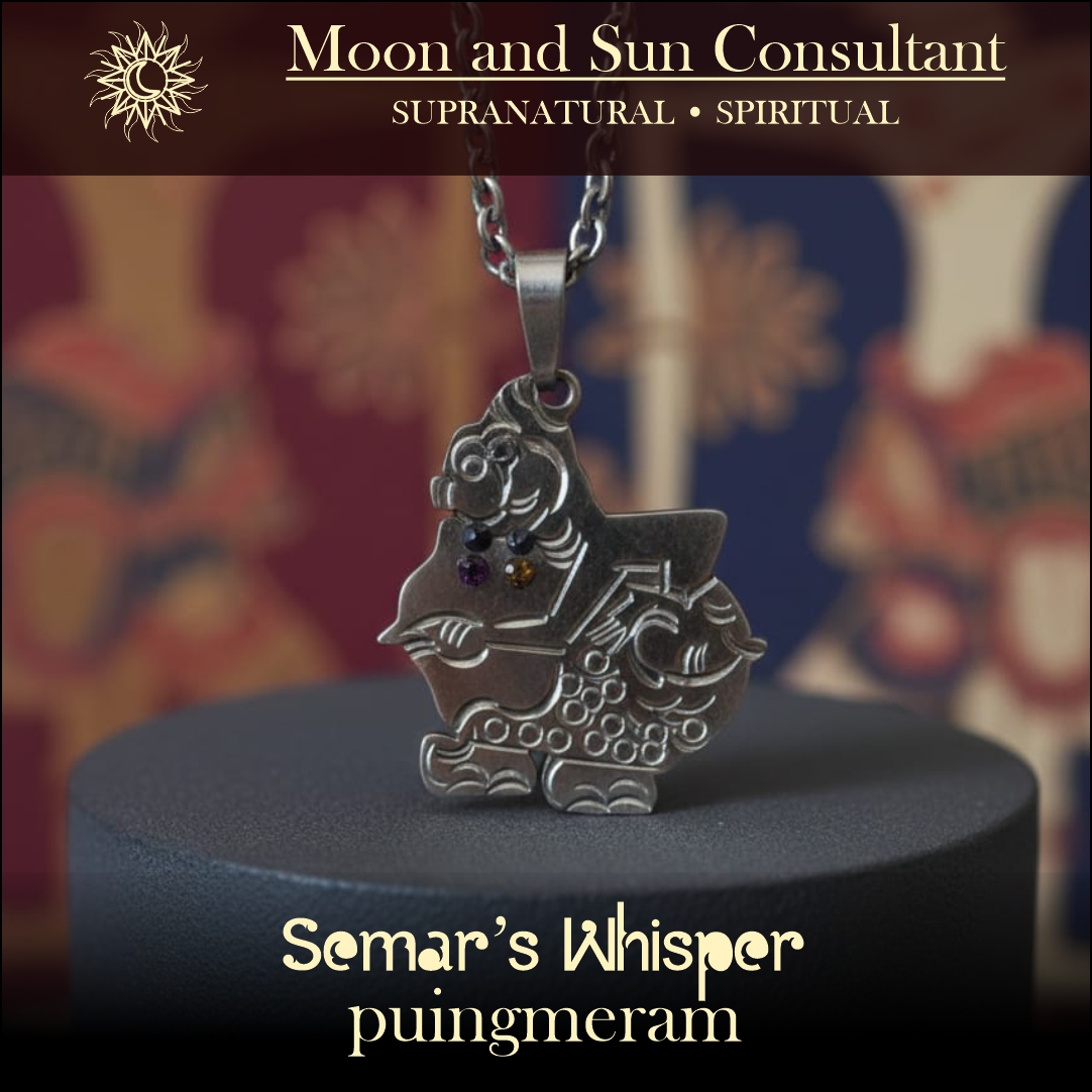 Setelah melalui perjalanan yang sangat panjang dan penuh perjuangan, kami memperoleh ijin dan hak khusus yang sangat dijaga oleh garis keturunan para guru dalam ilmu Semar di Nusantara. Sehingga dalam kesempatan ini kami menghadirkan Semar’s Whisper Puingmeram untuk anda, yang diritualkan pada 2 fenomena alam yang langka yaitu gerhana matahari cincin dan gerhana bulan total,